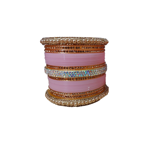Celebrate your special day with timeless elegance with this Elegant Wedding Chura Bangles Set for Brides. Designed to add grace and charm to every bridal look, this beautiful chura set features a soft baby pink base enhanced with premium stone detailing, pearl accents, and golden embellishments.