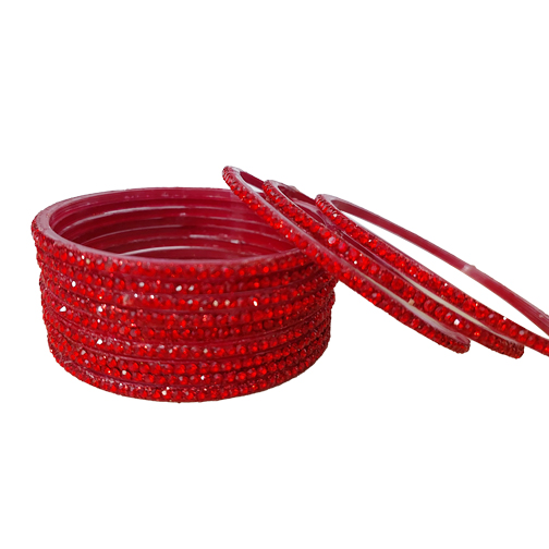 Ruby Red Stone Studded Glass Bangle Set for Women
