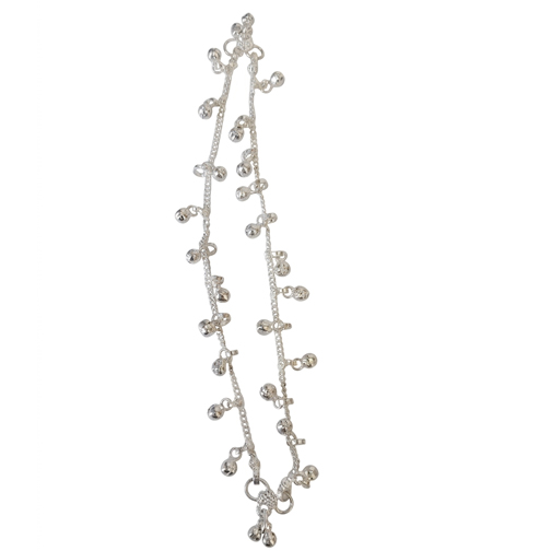 Silver Ghungroo Charm Payal for Women features a graceful double-chain design adorned with delicate ghungroo bells that create a subtle, charming jingle. Crafted with a premium silver-toned finish, this lightweight anklet is perfect for daily wear as well as festive occasions. A beautiful blend of traditional elegance and modern style, it complements both ethnic and contemporary outfits effortlessly.